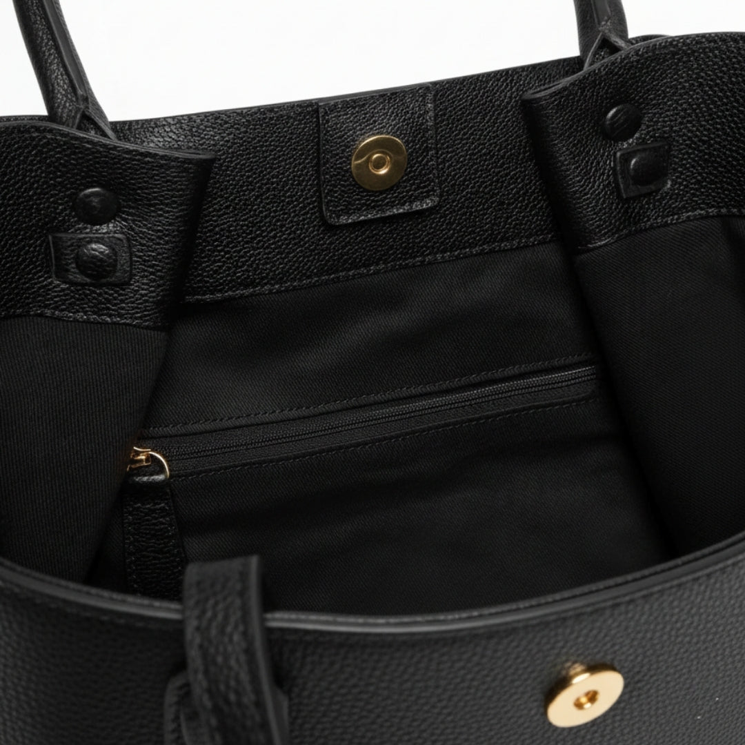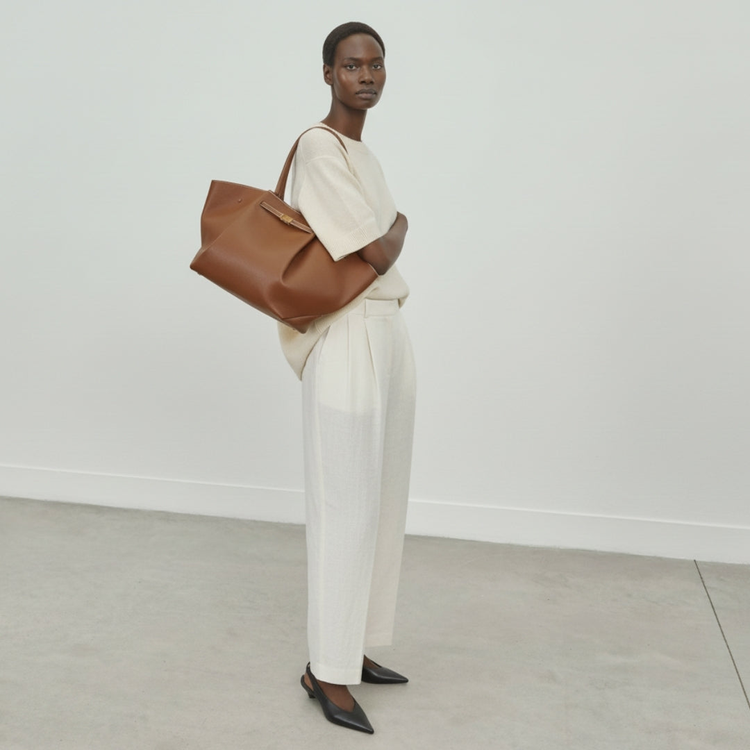 The Éliane City Tote is the ultimate expression of functional luxury. Inspired by the architectural lines of modern metropolises, this piece balances a bold silhouette with the effortless elegance required by the contemporary woman.