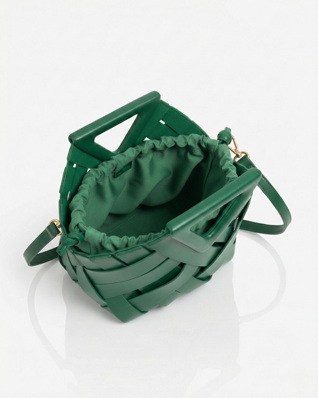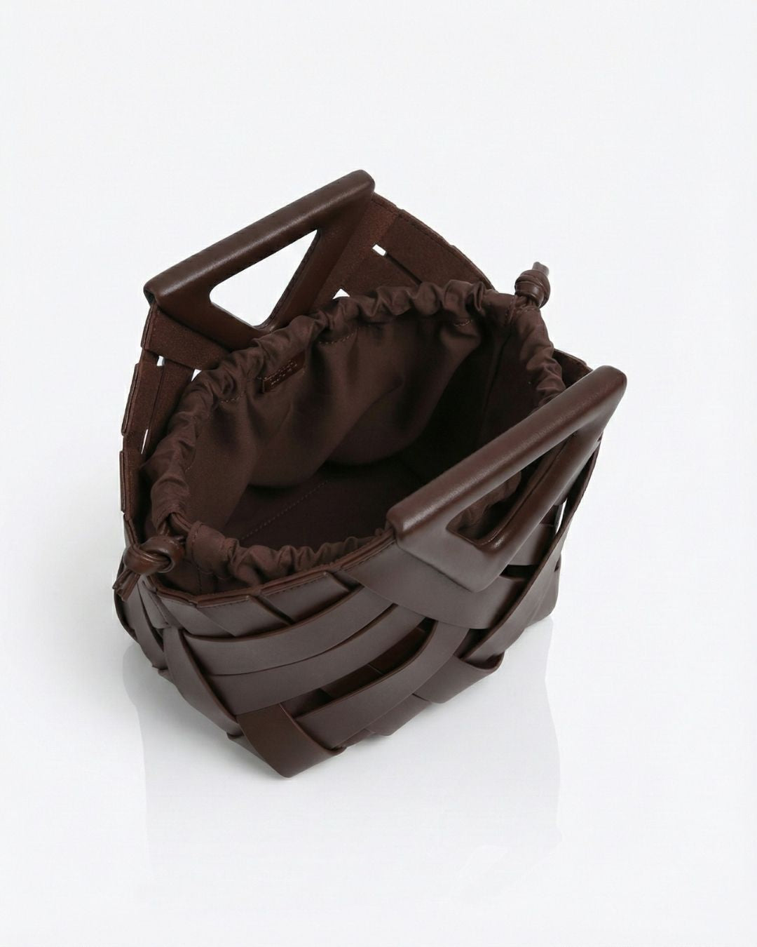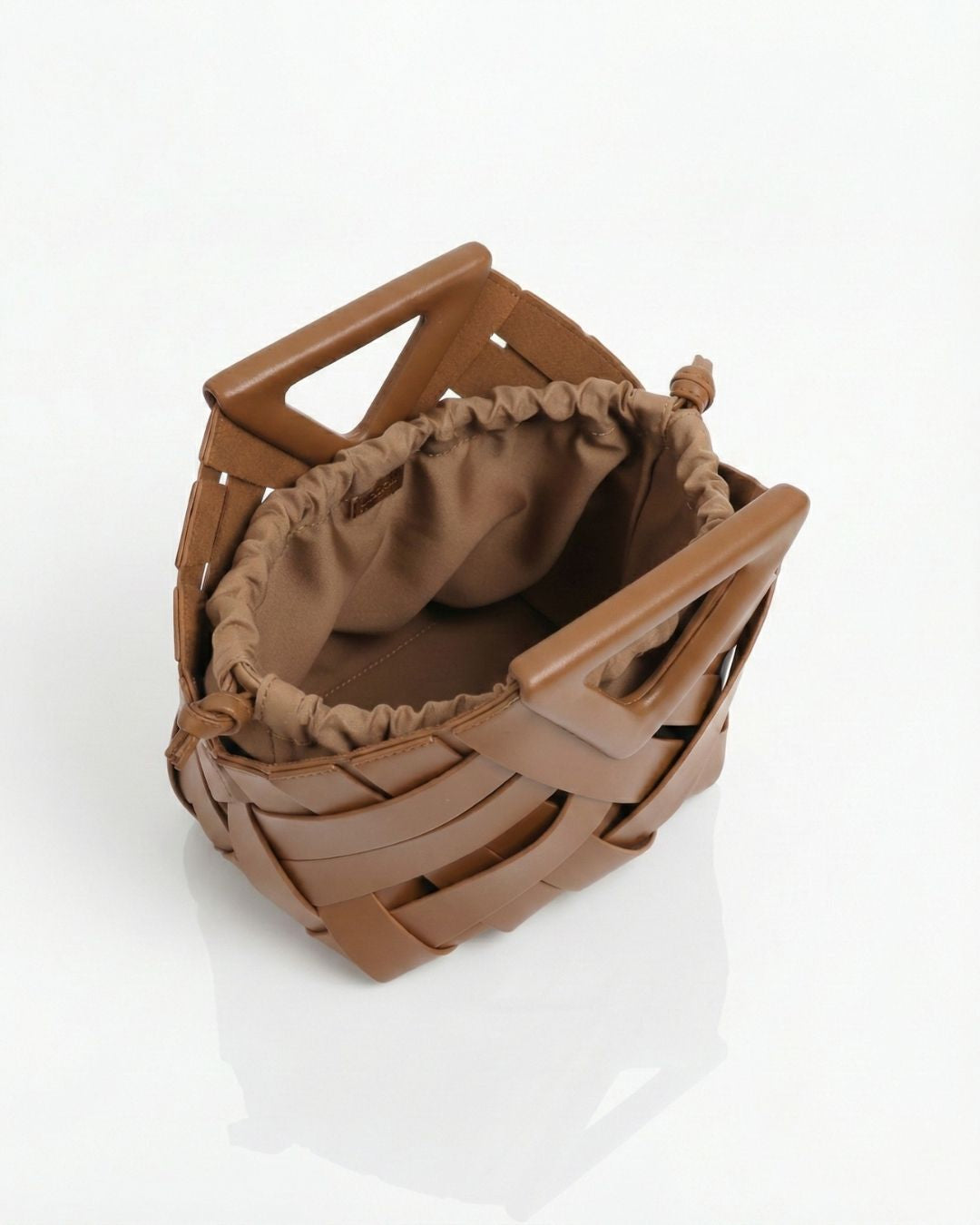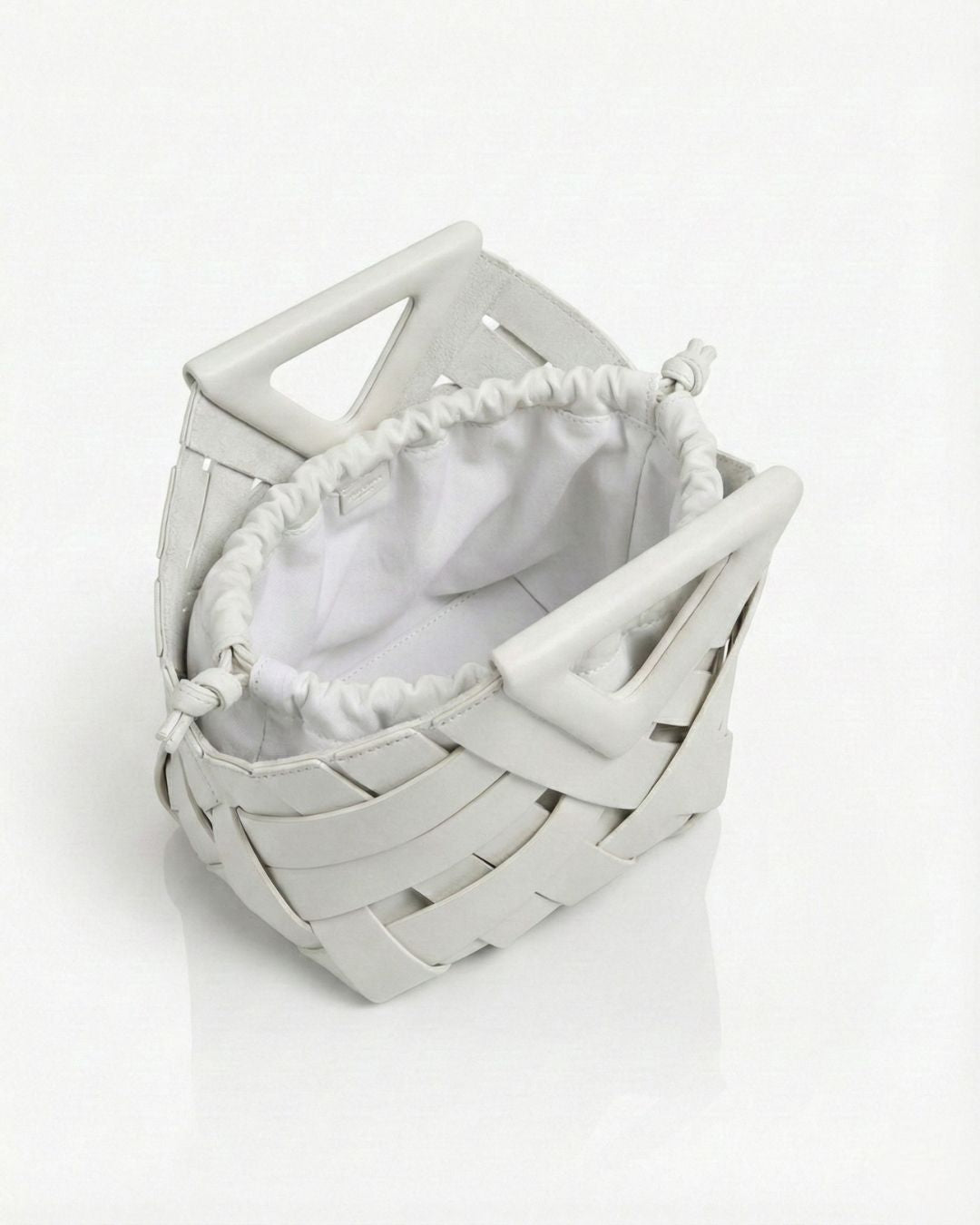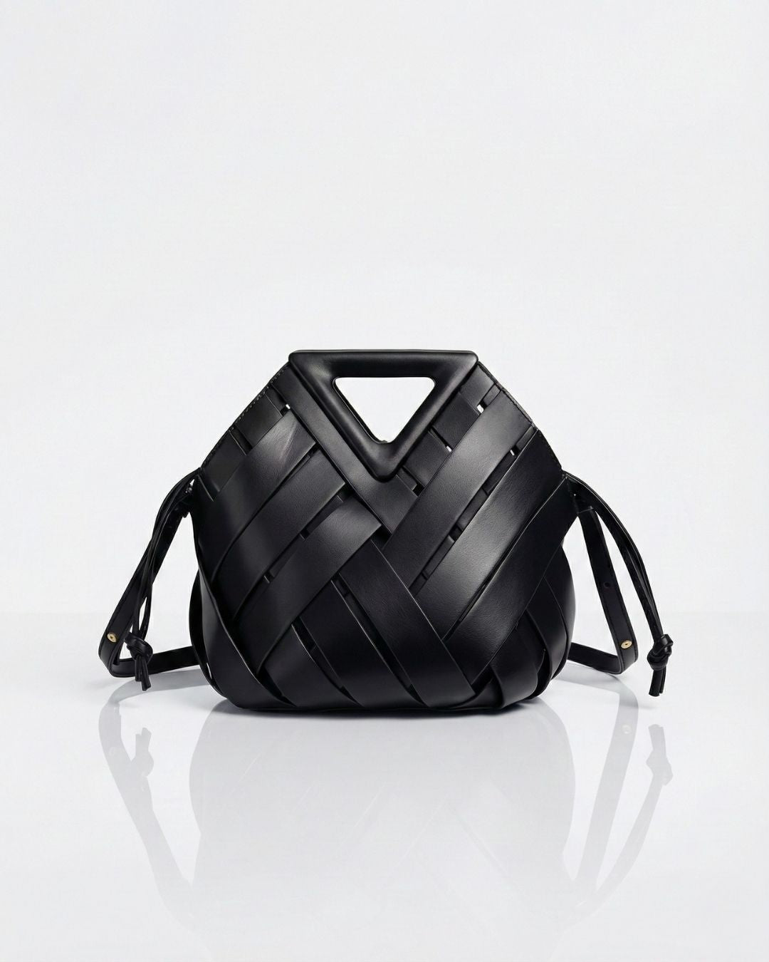 The Lover Tote A fusion of geometric precision and modern craftsmanship. The Lover Structured Tote is defined by its striking wide-lattice weave and iconic triangular cutout handle. This sculptural silhouette seamlessly blends architectural form with everyday functionality.