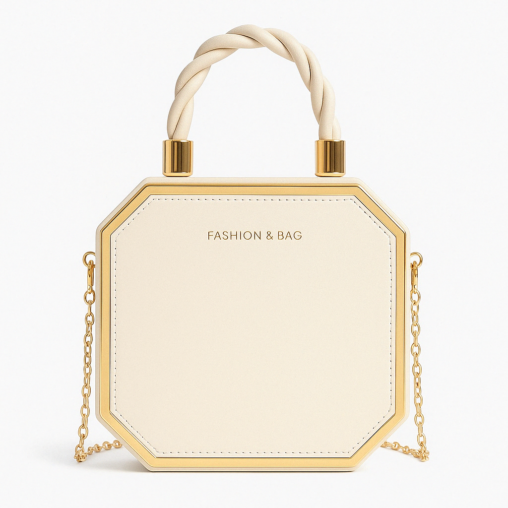 doesn’t whisper — she speaks in EDGES, GOLD DETAILING, and perfect restraint. With her GEOMETRIC SILHOUETTE and structured grip, she transforms simplicity into statement. Meant for evenings that feel effortless, and days that deserve punctuation.